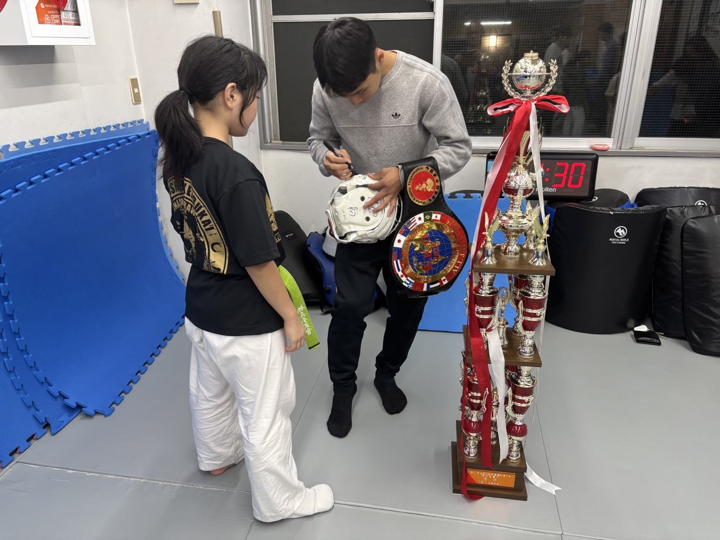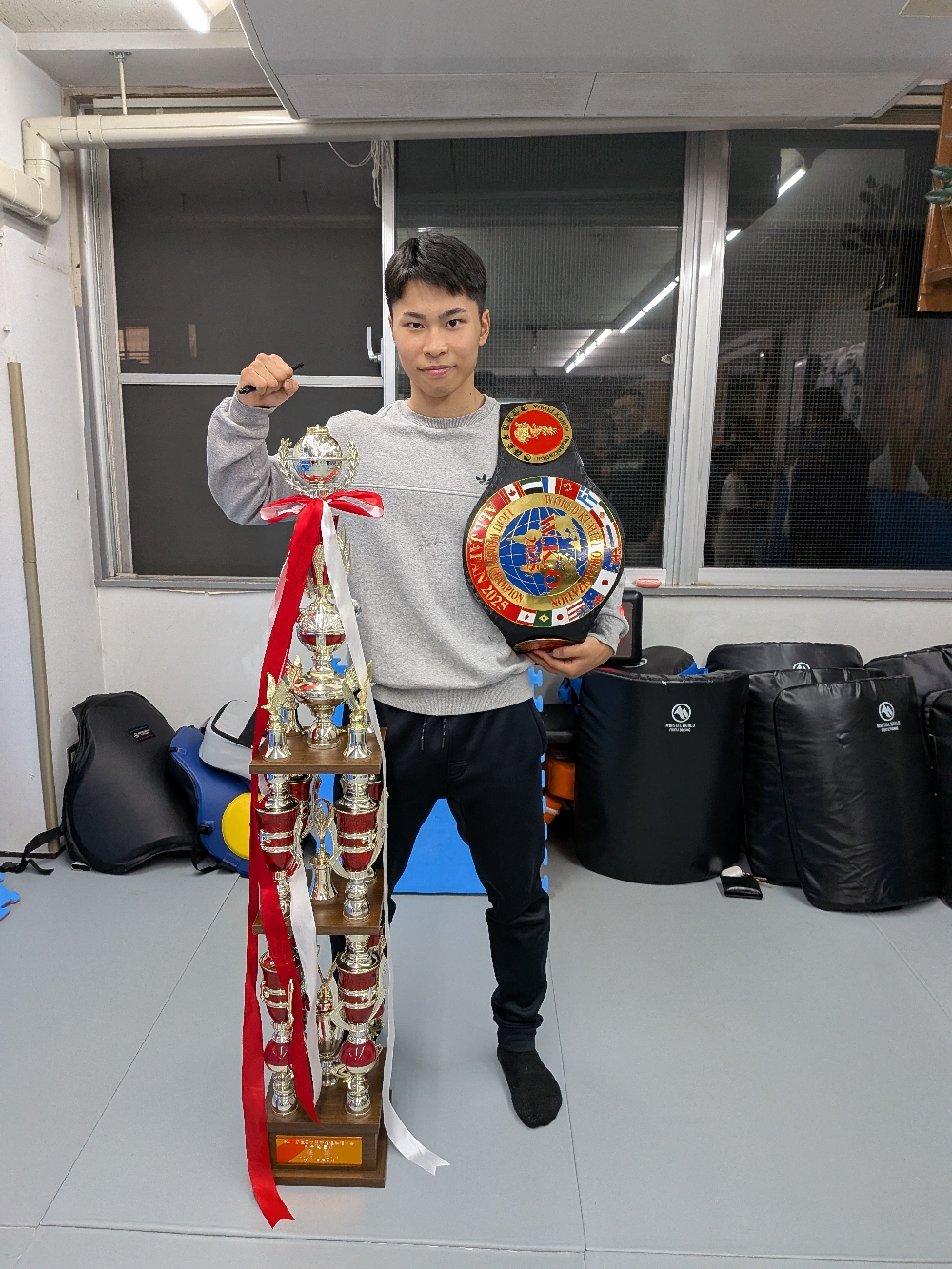 本日の少年部クラス終了後に白蓮会館全日本大会を優勝した和田凜太郎(初段)が勝利報告に来てくれました🤗
